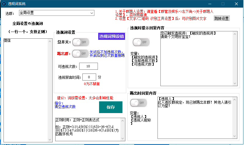 请注意,如果添加完成后,发送任意内容都提示违规,请立即在界面检查是否有空白内容